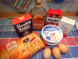 Kaffee in eine Schale geben und den restlichen Amaretto dazugeben. Dann die Löffelbisquits nacheinander kurz in Kaffee tränken und in die Form legen. Wenn die Form mit einer Schicht Bisquits voll ausgelegt ist, eine Schicht Creme darüber und dann nochmal Bisquits und Creme schichten (also insgesamt 4 Schichten).
